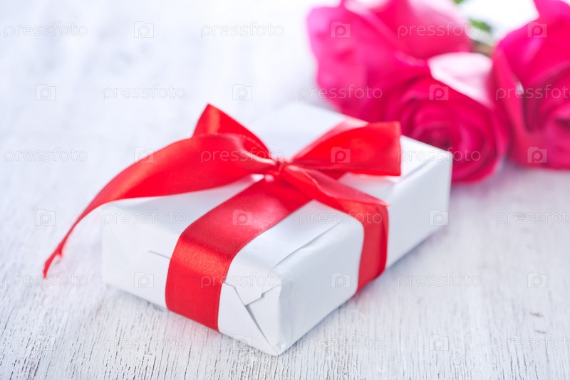 Подарок и красная роза