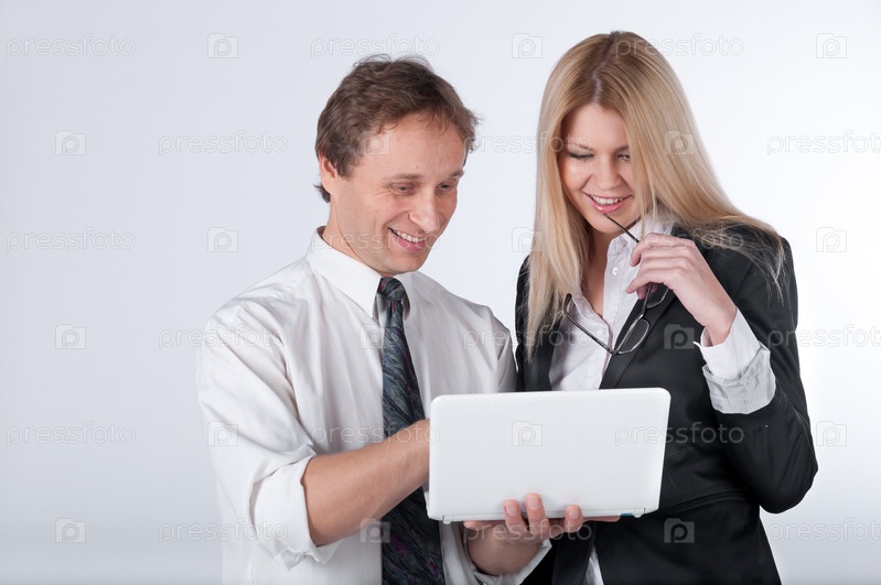 Мужчина с женщиной смотрят на экран нетбука