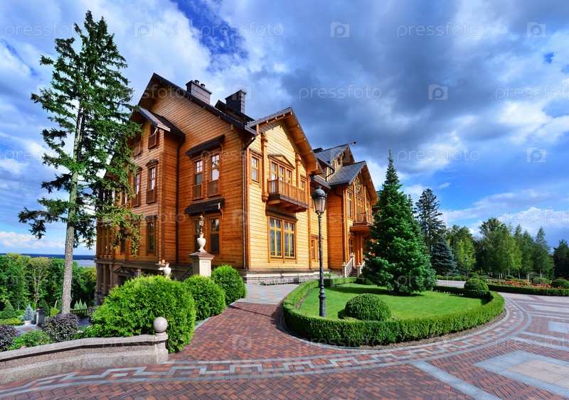 Зеленый парк и коттедж
