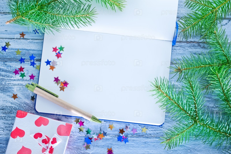 Блокнот и рождественские украшения