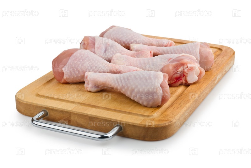 Куриные окорочка на деревянной доске, изолированные на белом фоне