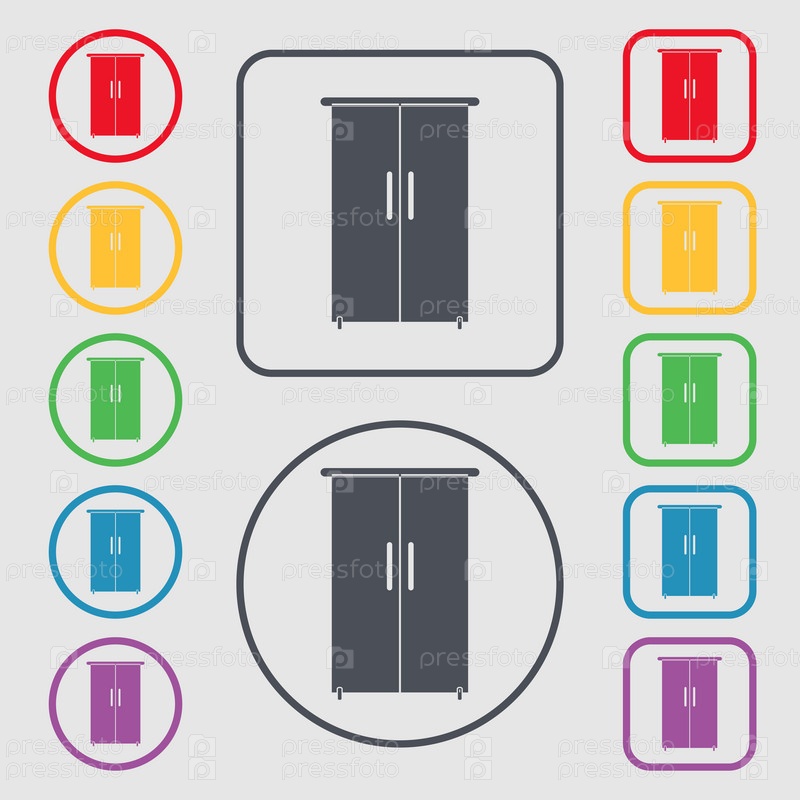 Шкаф значок знак. Символы на круглых и квадратных кнопок с рамкой. Вектор