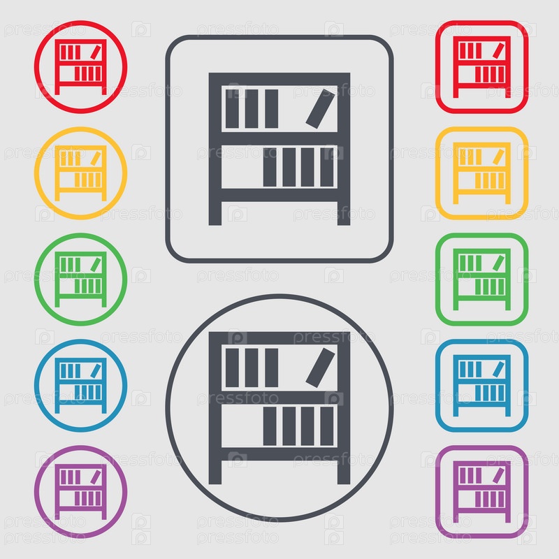 Полке значок знак. Символы на круглых и квадратных кнопок с рамкой. Вектор