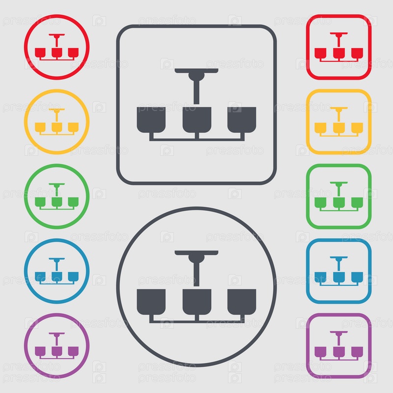 Люстра лампа свет значок знак. Символы на круглых и квадратных кнопок с рамкой. Вектор
