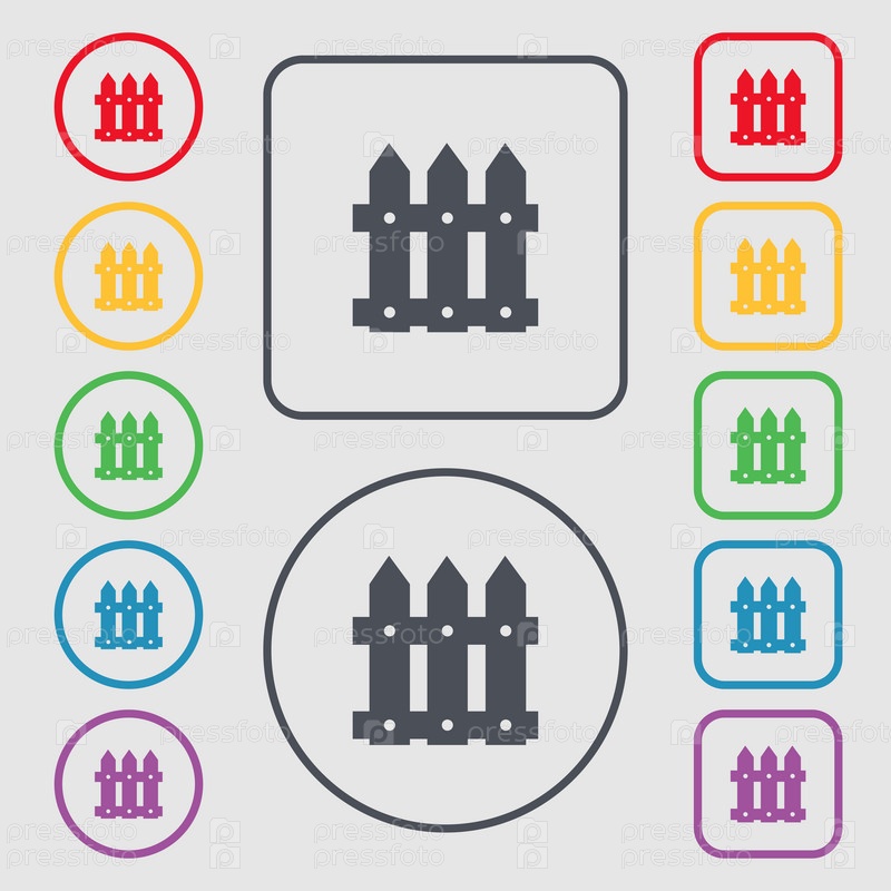 Забор значок знак. Символы на круглых и квадратных кнопок с рамкой. Вектор