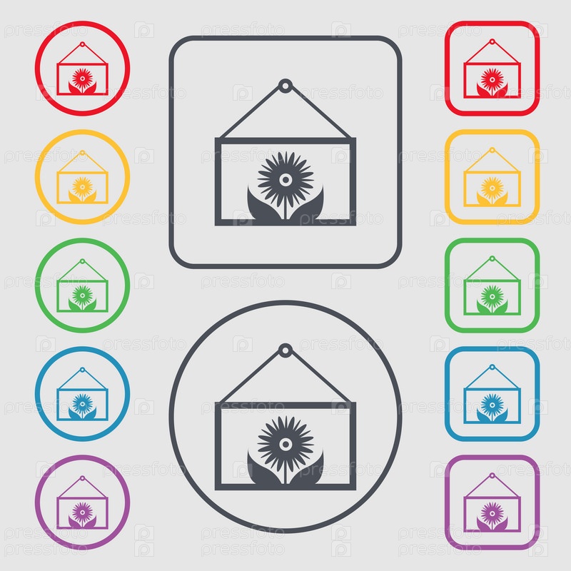 Рамка с цветок значок знак. Символы на круглых и квадратных кнопок с рамкой. Вектор