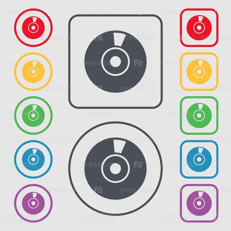Символы на круглых и квадратных кнопках с рамкой. вектор