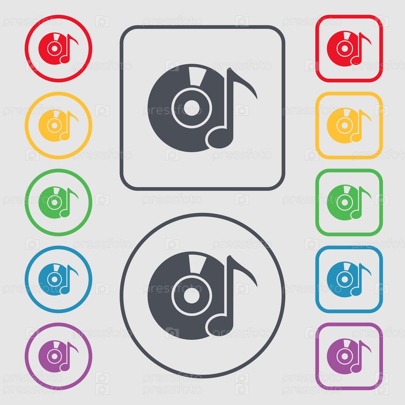 Символы на круглых и квадратных кнопках с рамкой. вектор
