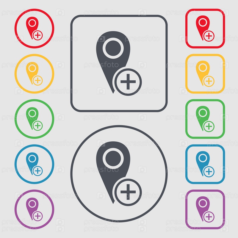 Карта знак значок указателя. Символы на круглых и квадратных кнопок с рамкой. Вектор