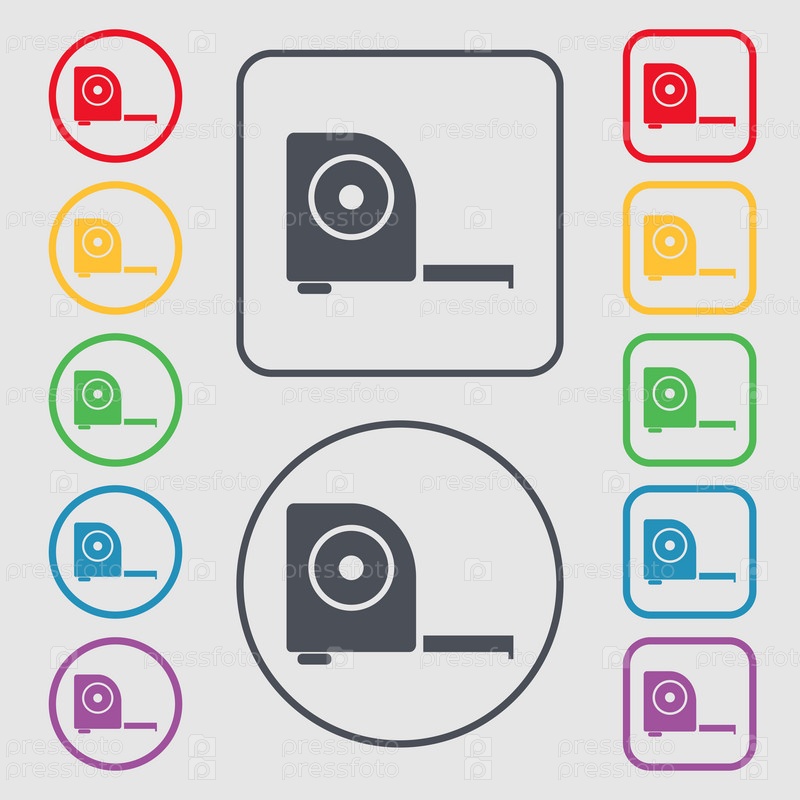 Рулетка строительство значок знак. Символы на круглых и квадратных кнопок с рамкой. Вектор