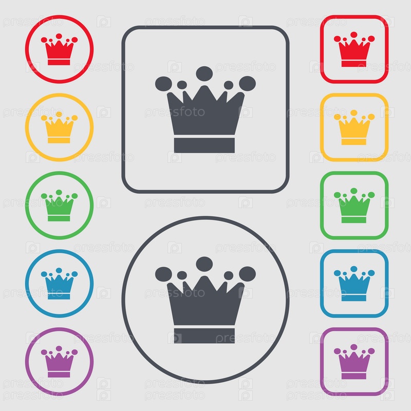 Корона значок знак. Символы на круглых и квадратных кнопок с рамкой. Вектор