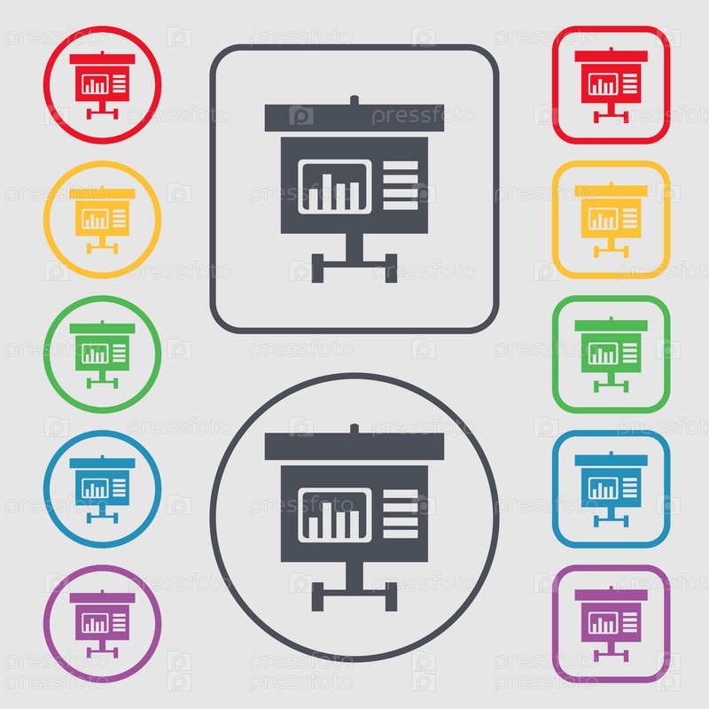 Граф значок знак. Символы на круглых и квадратных кнопок с рамкой. Вектор