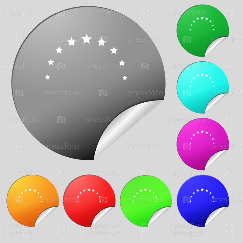 Знак зодиака значок. Любимые кнопки. Символ навигации. Набор из восьми мультицветных круглых кнопок, наклеек. Вектор