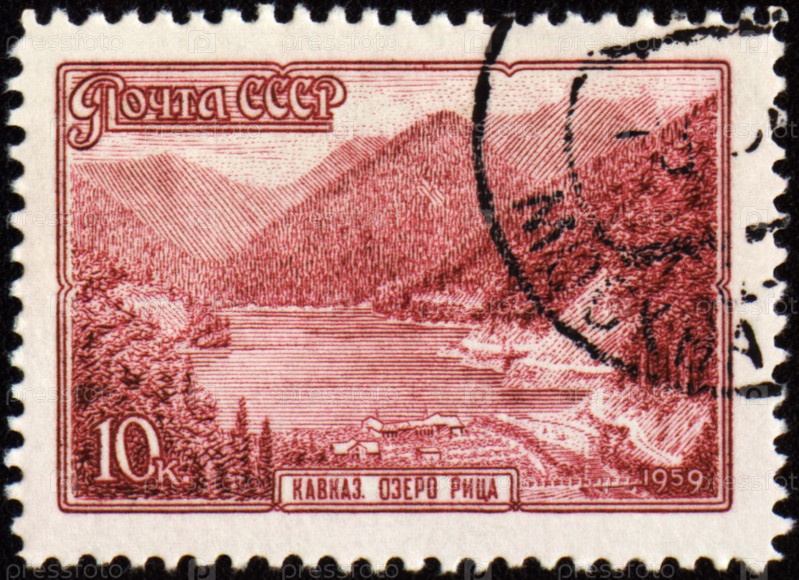 Почтовая марка СССР с изображением озера Риза на Кавказе
