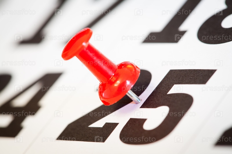 Канцелярская кнопка на числе 25 в календаре