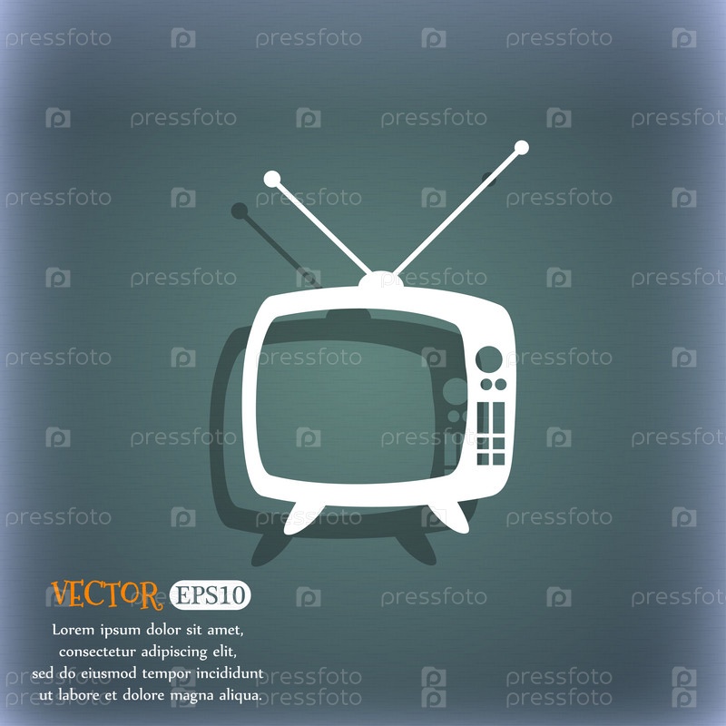 Ретро ТВ режиме знак значок. Символ комплект телевидения. На сине зеленый абстрактный фон с тенью и пространства для вашего текста. Вектор