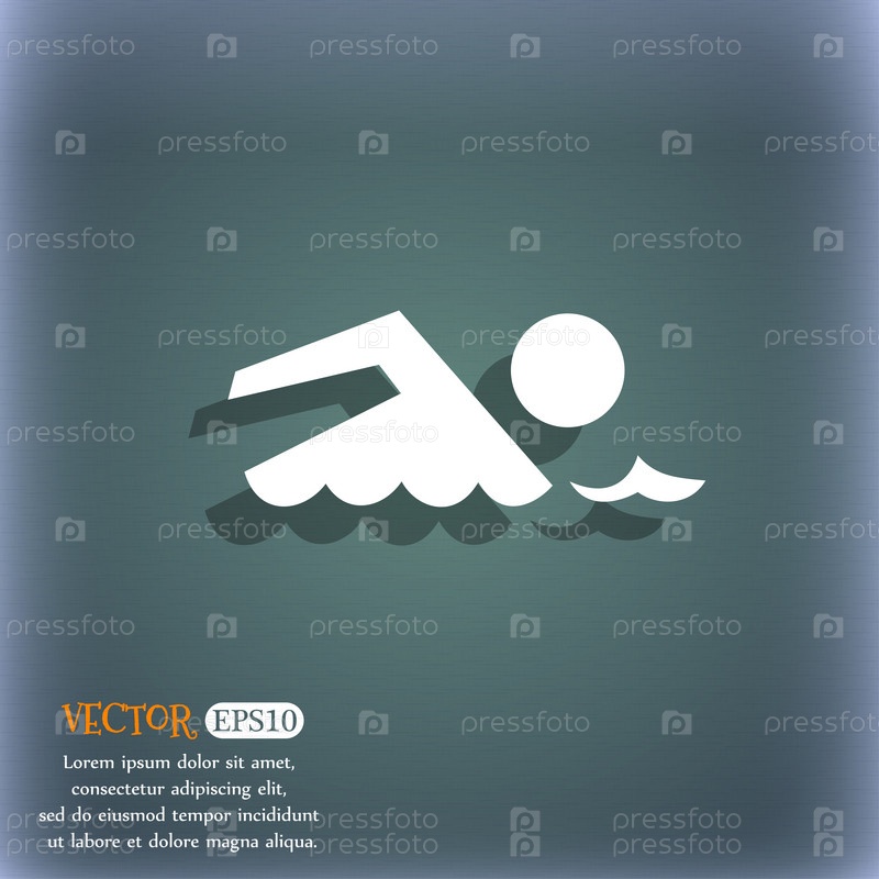 Плавательный знак значок. Символ плавать бассейн. Морская волна. На сине зеленый абстрактный фон с тенью и пространства для вашего текста. Вектор