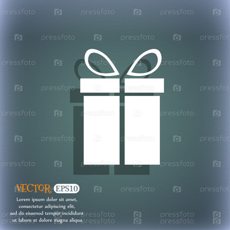 Подарочная коробка знак значок. Настоящий символ. На сине зеленый абстрактный фон с тенью и пространства для вашего текста. Вектор