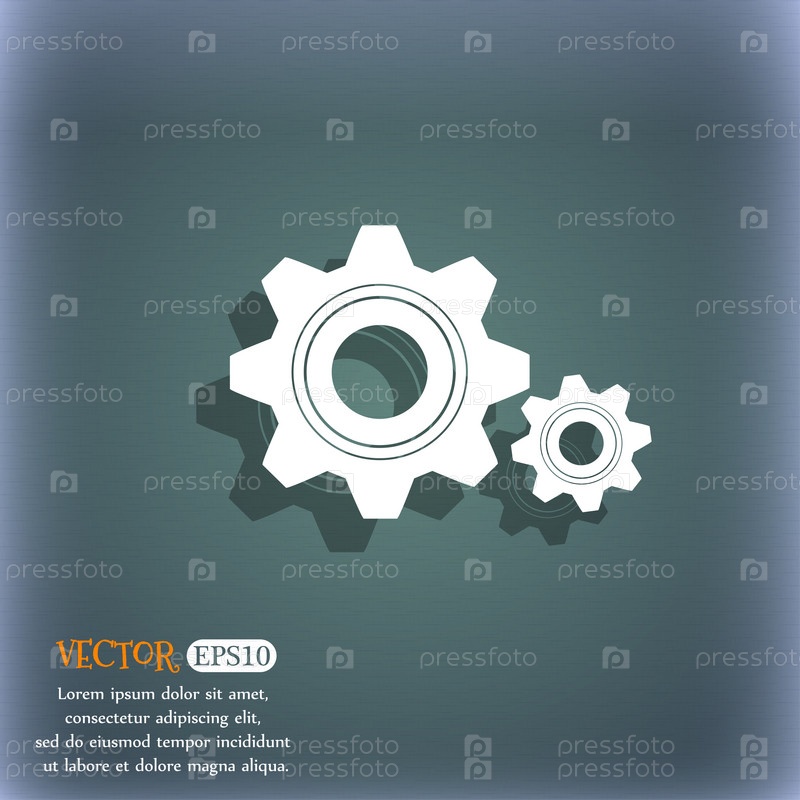 Винтик параметры знак значок. Зубчатая механизмом шестеренка. На сине зеленый абстрактный фон с тенью и пространства для вашего текста. Вектор