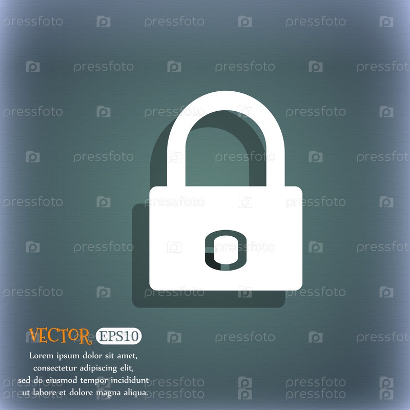 Значок замка знак. Локера символ. На сине зеленый абстрактный фон с тенью и пространства для вашего текста. Вектор