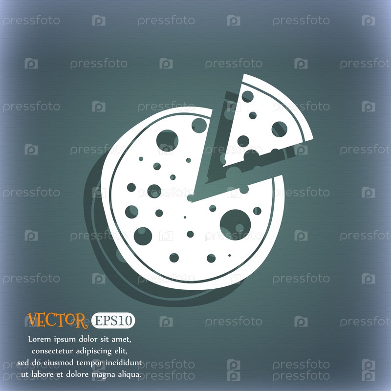 Пицца значок. На сине зеленый абстрактный фон с тенью и пространства для вашего текста. Вектор