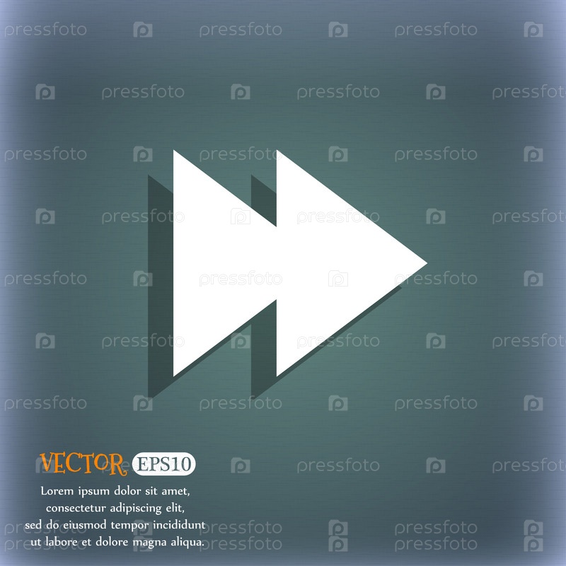 Значок мультимедийного знака. Символ навигации игрока. На сине зеленый абстрактный фон с тенью и пространства для вашего текста. Вектор