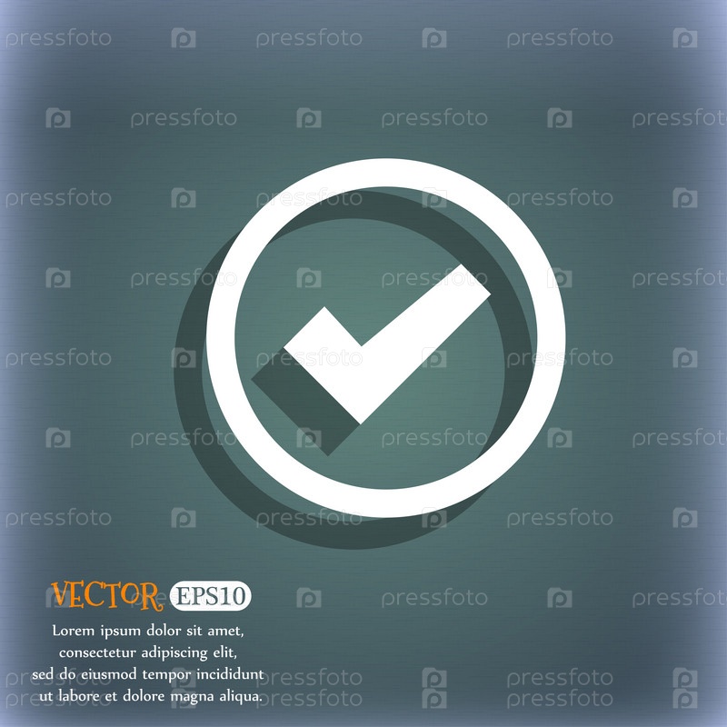 Значок флажка знак. Подтвердите утвержденные символ. На сине зеленый абстрактный фон с тенью и пространства для вашего текста. Вектор