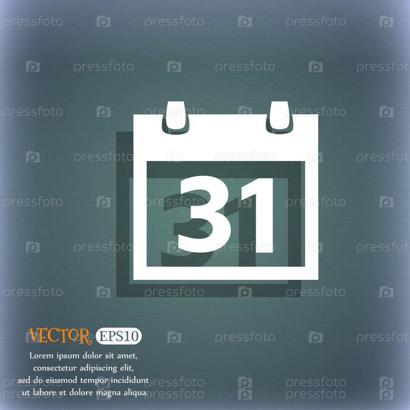Значок знак календаря. символ месяце 31 день. Кнопка Дата. На сине зеленый абстрактный фон с тенью и пространства для вашего текста. Вектор