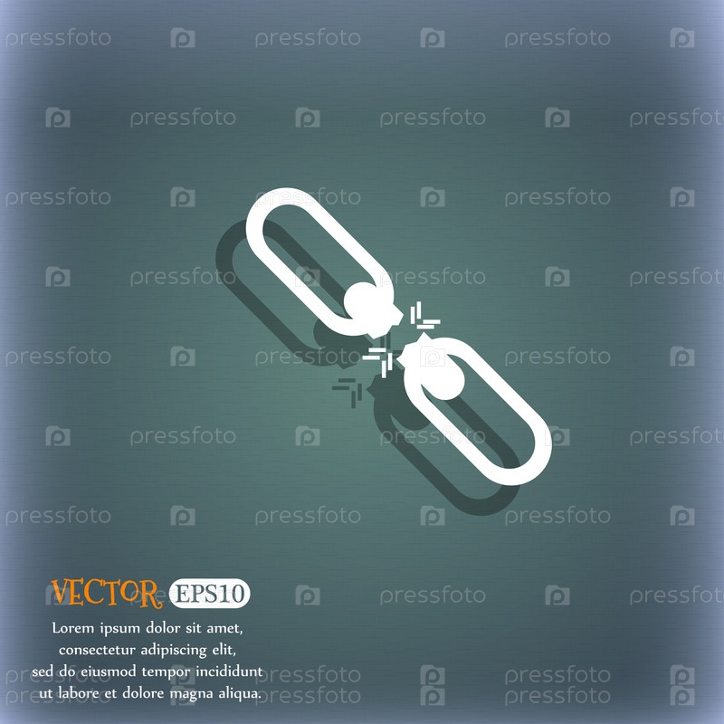 Сломанной подключения плоских один значок. На сине зеленый абстрактный фон с тенью и пространства для вашего текста. Вектор