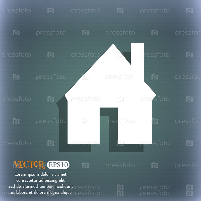 Значок домашней признаком. Главная кнопка. Символ навигации. На сине зеленый абстрактный фон с тенью и пространства для вашего текста. Вектор