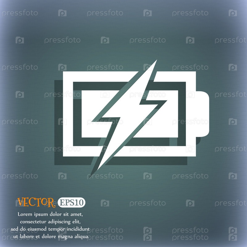 Зарядки знак значок батареи. Символ молния. На сине зеленый абстрактный фон с тенью и пространства для вашего текста. Вектор