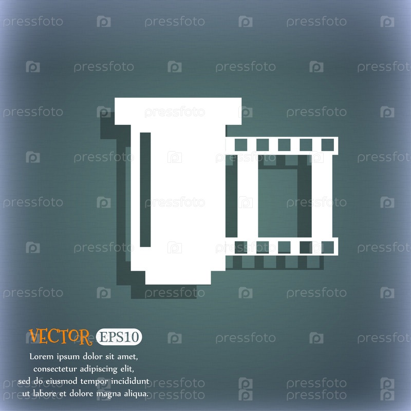 Негативных пленок значок символа. На сине зеленый абстрактный фон с тенью и пространства для вашего текста. Вектор