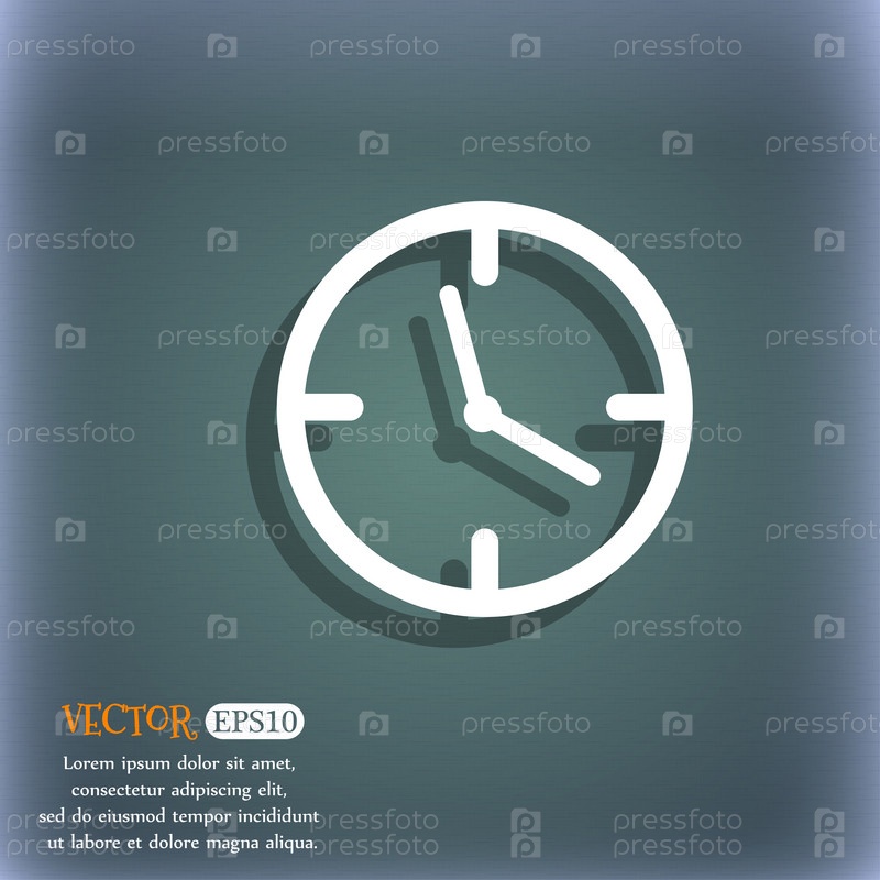 Значок часов время знак. Механические часы символ. На сине зеленый абстрактный фон с тенью и пространства для вашего текста. Вектор