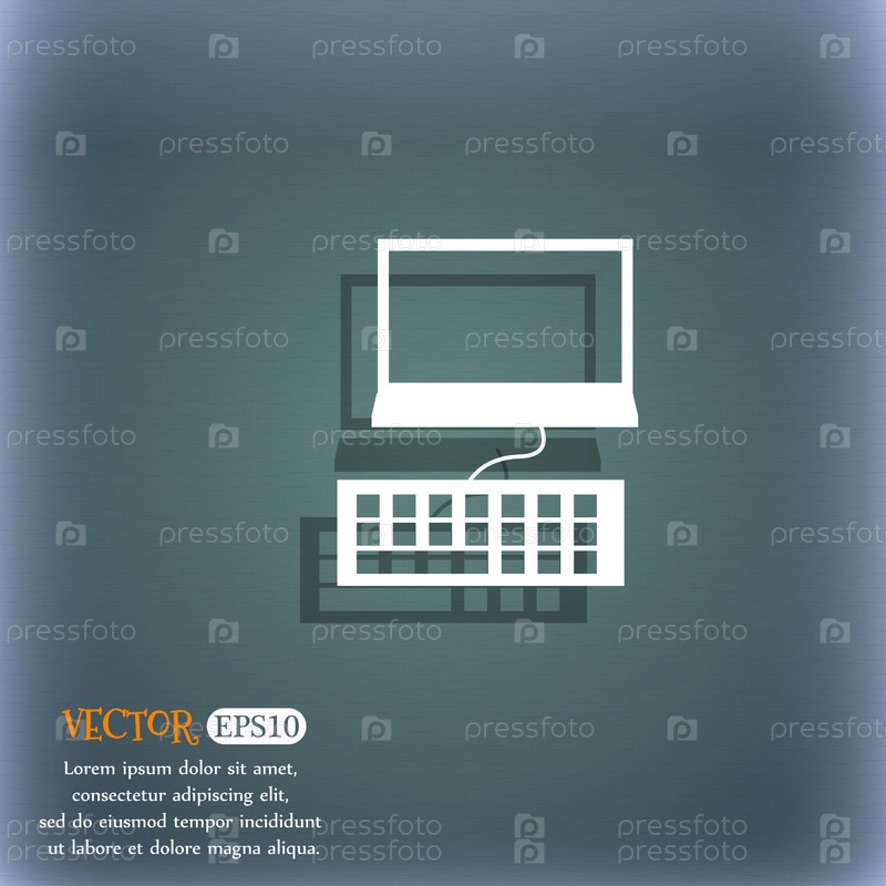 Монитор компьютера и клавиатуры значок. На сине зеленый абстрактный фон с тенью и пространства для вашего текста. Вектор