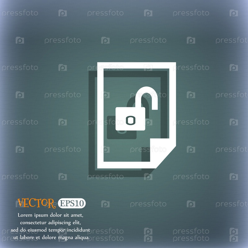Файл разблокирована значок знак. На сине зеленый абстрактный фон с тенью и пространства для вашего текста. Вектор
