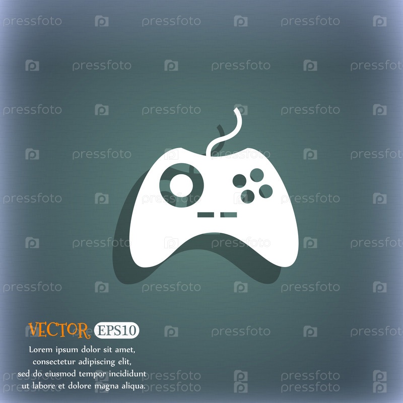 Знак иконку джойстика. Видео игры символ. На сине зеленый абстрактный фон с тенью и пространства для вашего текста. Вектор