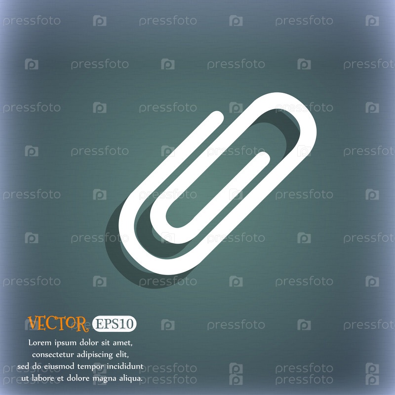 Знак значок скрепки. Символ фрагмента ролика. На сине зеленый абстрактный фон с тенью и пространства для вашего текста. Вектор