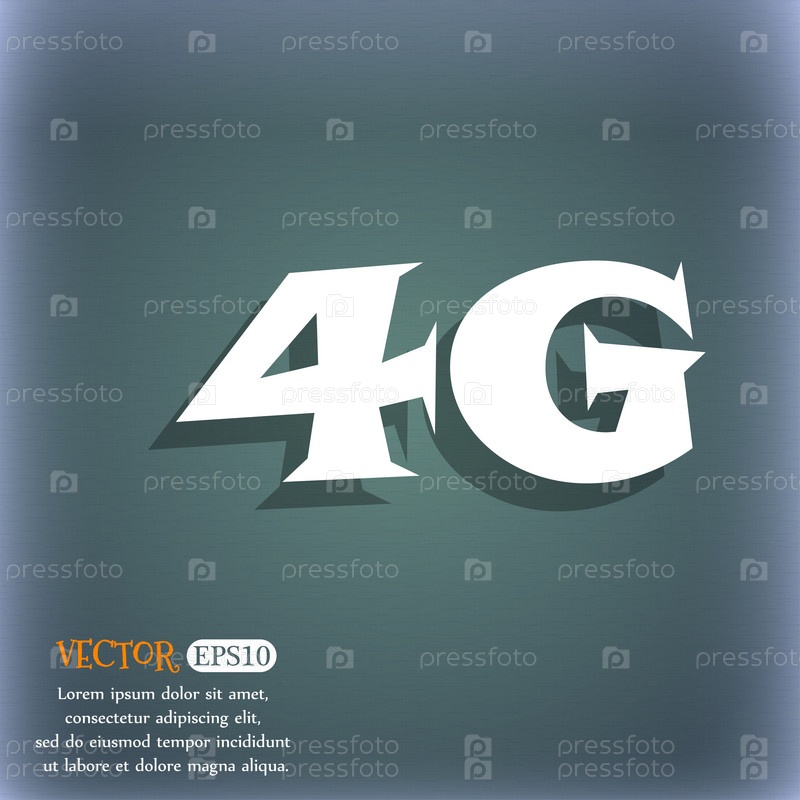 Знак значка 4G символ технологии мобильной связи на синем зеленом абстрактном фоне с тенью и пространством для вашего текста вектор