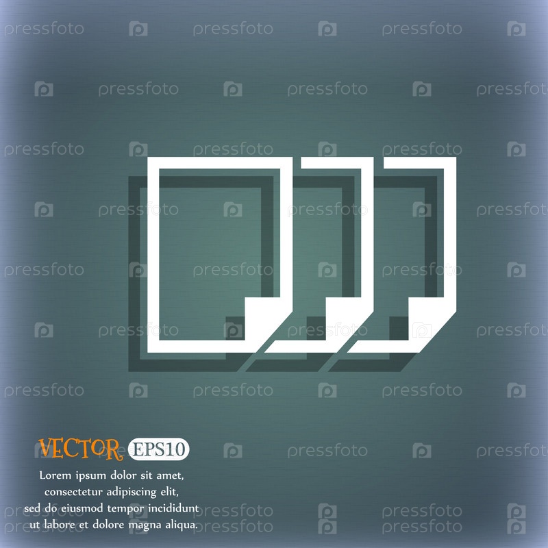 Копирование файла знак значок. Дублировать символ документа. На сине зеленый абстрактный фон с тенью и пространства для вашего текста. Вектор