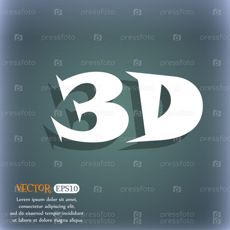 Иконка 3D значок. символ новой технологии 3D. на синем зеленом абстрактном фоне с тенью и пространством для вашего текста. вектор