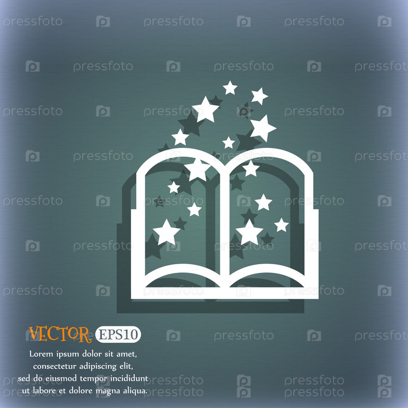 Магический знак значок книги. Открытая книга символ. На сине зеленый абстрактный фон с тенью и пространства для вашего текста. Вектор