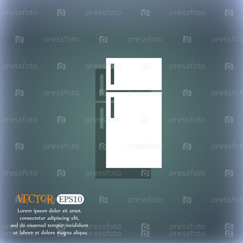 Холодильник значок знак. На сине зеленый абстрактный фон с тенью и пространства для вашего текста. Вектор