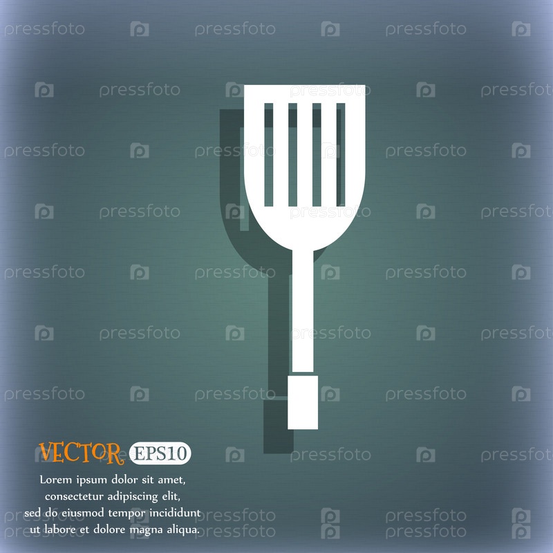 Кухонные приборы значок знак. На сине зеленый абстрактный фон с тенью и пространства для вашего текста. Вектор