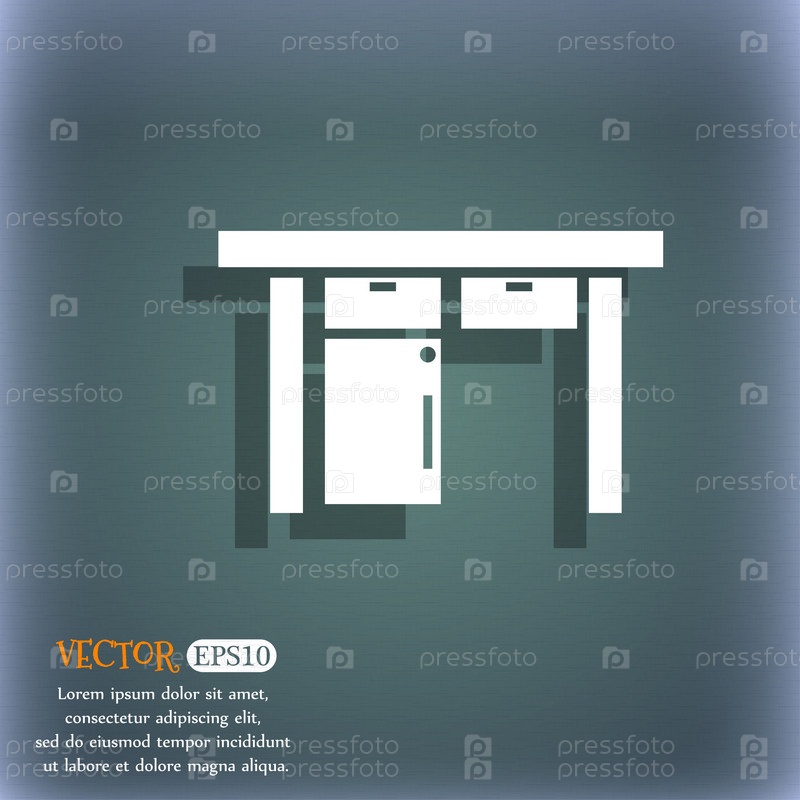Тумба прикроватная значок знак. На сине зеленый абстрактный фон с тенью и пространства для вашего текста. Вектор