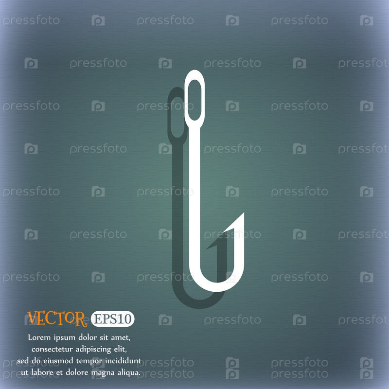 Рыбалка крючок значок знак. На сине зеленый абстрактный фон с тенью и пространства для вашего текста. Вектор
