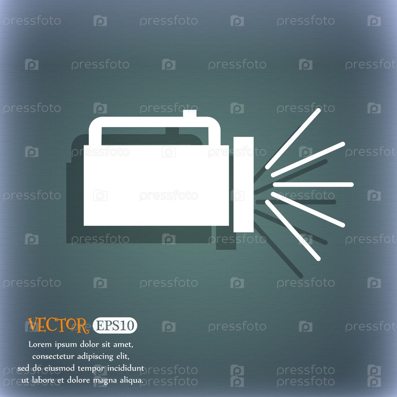 Фонарик значок знак. На сине зеленый абстрактный фон с тенью и пространства для вашего текста. Вектор