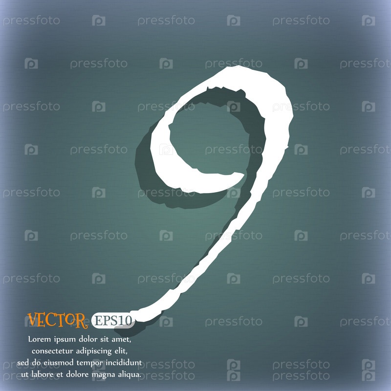 Номер девять значок знак. На сине зеленый абстрактный фон с тенью и пространства для вашего текста. Вектор