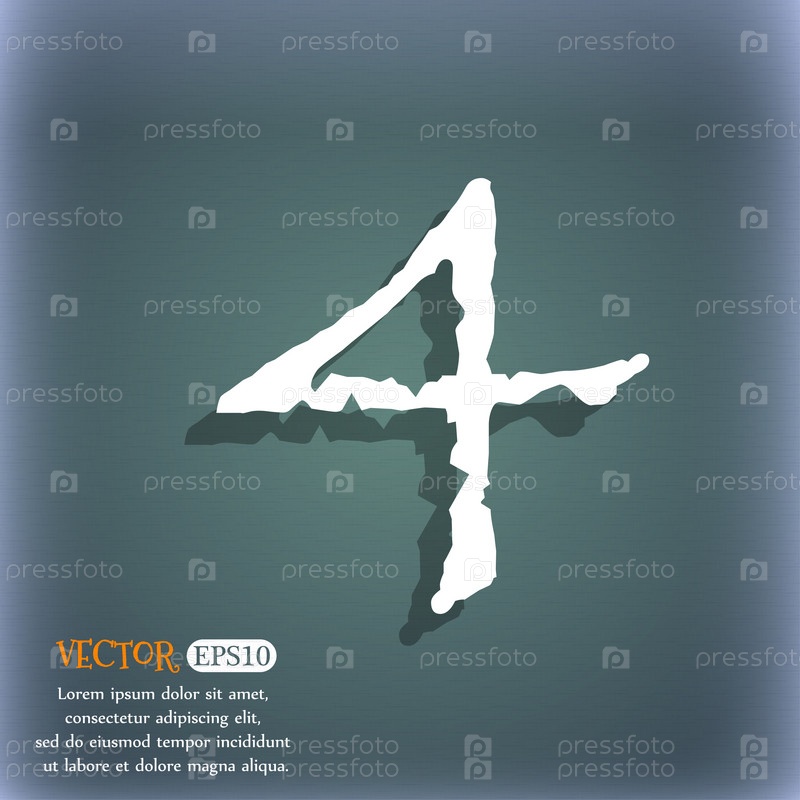 Номер четыре значок знак. На сине зеленый абстрактный фон с тенью и пространства для вашего текста. Вектор