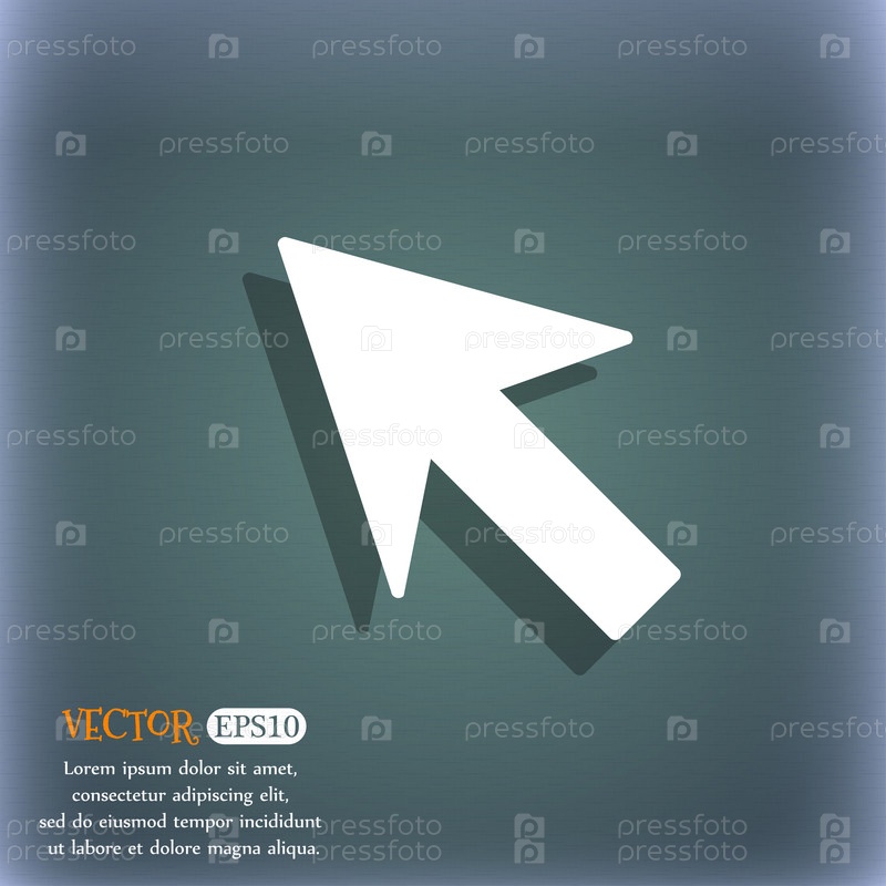 Курсор, знак значок стрелки. На сине зеленый абстрактный фон с тенью и пространства для вашего текста. Вектор