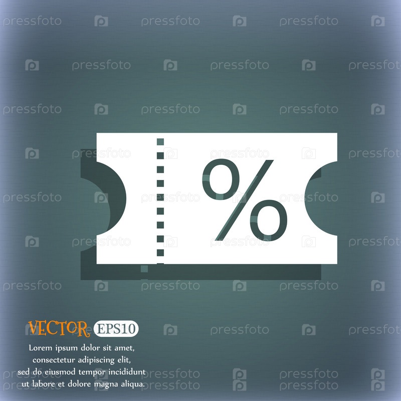 Билет со скидкой значок знак. На сине зеленый абстрактный фон с тенью и пространства для вашего текста. Вектор